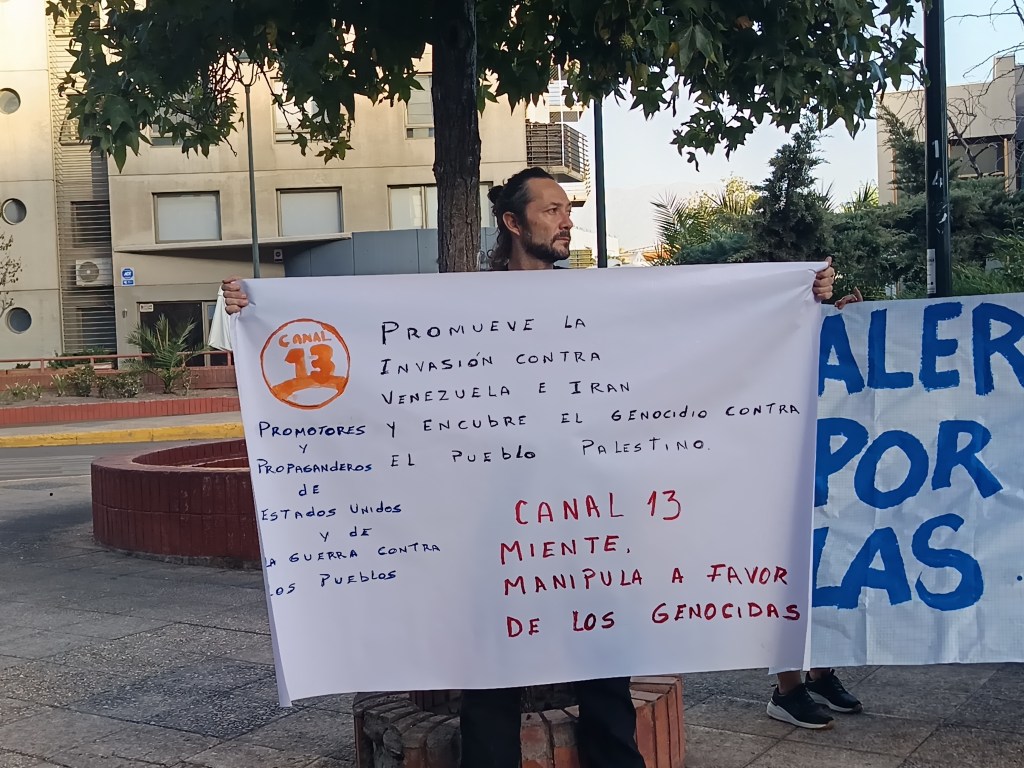 Organizaciones sociales protestaron frente a las instalaciones del canal 13, en la comuna de Providencia, para cuestionar su línea editorial en política internacional y acusar cobertura mediática tendenciosa. Los convocantes denunciaron el cierre de las dependencias durante la movilización y señalaron que no hubo reacción pública del medio frente a la manifestación.