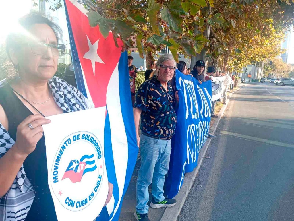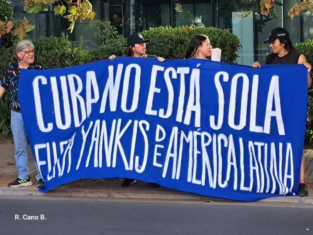 En la movilización participaron agrupaciones como el Movimiento de Solidaridad con Cuba, la Internacional Antifascista Capítulo Chile y la Brigada Internacionalista Ramón Allende Garcés, entre otras organizaciones solidarias. La convocatoria se desarrolló frente a la sede diplomática ubicada en la avenida Andrés Bello, en la comuna de Las Condes.