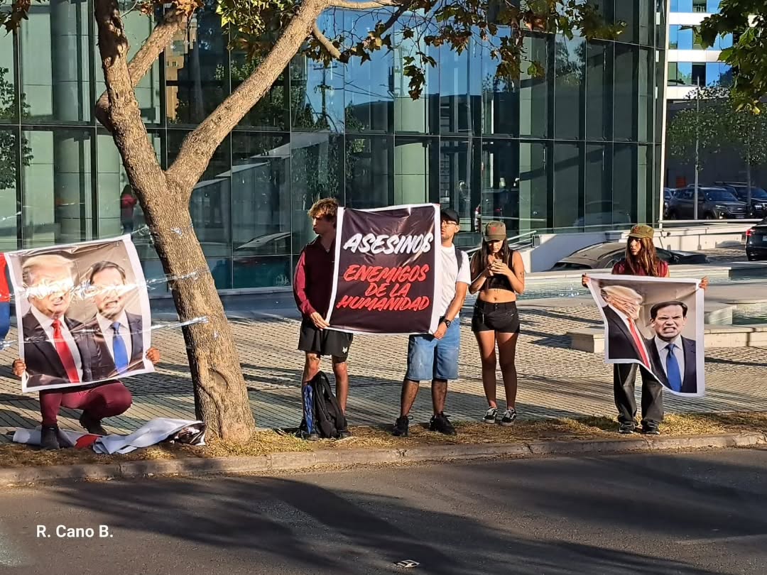 Santiago de Chile (360Noticias) Diversas organizaciones sociales y políticas chilenas realizaron este martes una manifestación en el frontis de la embajada de Estados Unidos en Santiago para expresar su rechazo a las acciones del gobierno estadounidense contra Cuba y a la escalada militar contra la República Islámica de Irán.