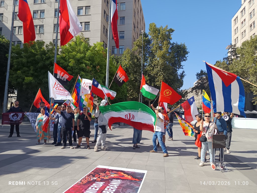 Este sábado 14 de marzo diversas organizaciones marcharon desde el Paseo Bulnes hasta el monumento a Simón Bolivar, ubicado por Avenida Alameda, donde realizaron un acto en solidaridad con Venezuela, con Cuba, con Irán que siguen siendo agredidos por los Estados Unidos mediante bloqueos, amanazas y ataques contra estos países. La actividad fue escoltada y vigilada por la policía durante todo momento.