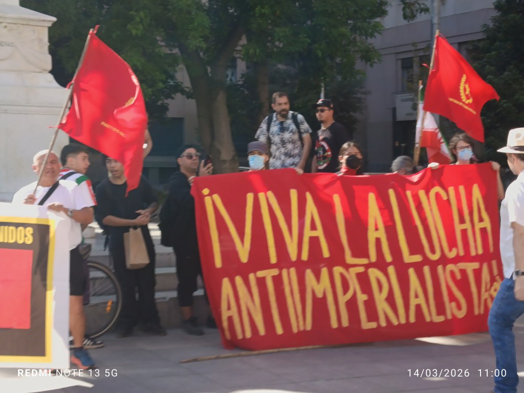 Por ello marchamos este sábado 14 de marzo en Santiago desde el Paseo Bulnes hasta el monumento del Libertador Simón Bolivar (Brasil /Alameda) y en Valparaíso desde Plaza Anibal Pinto hasta Plaza Victoria, bajo la consigna: “PAZ Y SOBERANÍA EN AMÉRICA LATINA, NO A LA GUERRA IMPERIALISTA”.