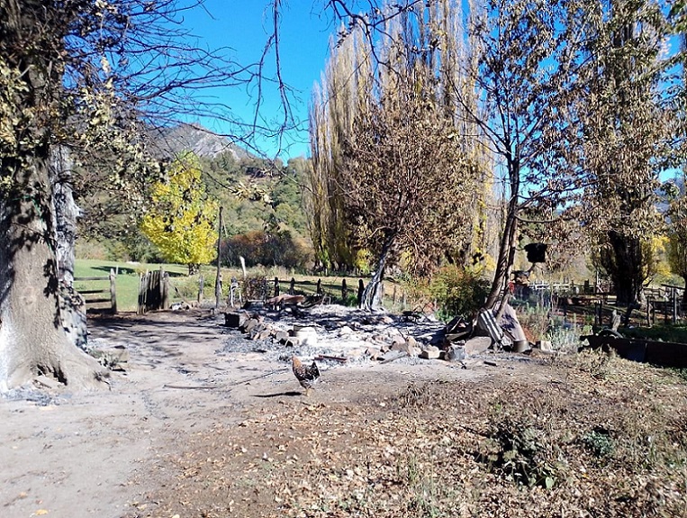 2. Todas nuestras rukas quedaron hechas cenizas, así también nuestros bienes, camas, frazadas, ropa, alimentos y herramientas, no se logró rescatar absolutamente nada. No solo fueron quemados nuestros hogares sino años de esfuerzo, de vida mapuche autónoma y por sobre todo digna, que han demostrado que se puede vivir como en los tiempos del kuibi moñen más aún cuando el Estado nos quiere ver desaparecidos como mapuche pewenche.