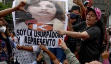 Partidarios de Pedro Castillo protestan en Lima, Perú, para exigir la liberación del expresidente, 8 de diciembre de 2022. (Foto: Getty Images) El destituido presidente de Perú, Pedro Castillo, dice que está “secuestrado” y tacha de “usurpadora” a la nueva mandataria, Dina Boluarte. “Lo dicho recientemente por una usurpadora…